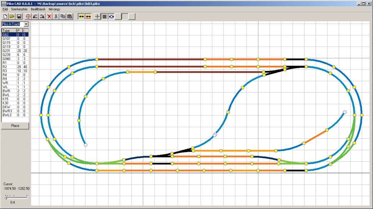 Hmm, jó ötlet ! További sínkészleteket is tennék bele, csak geometriai adatokra lenne szükségem. Aki használni szeretné másra is mint Piko A Track, az küldjön nekem adatokat. |