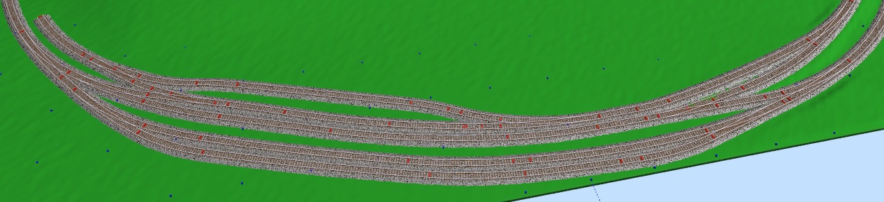 Lehet ívben állomást tenni, r=900-nál már biztosan szép is, de itt sajnos nincs annyi hely. Amivel helyet tudsz elérni az az átlós megálló, vagy ívben végződő/kezdődő megálló.  |