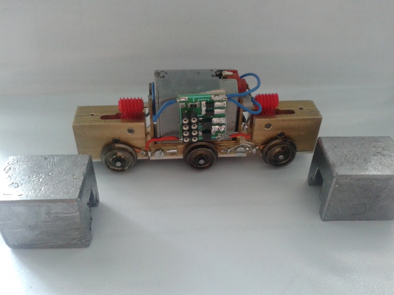 Horgászorsóknál használnak örvényáramú kuplungot, amik mágnesekkel vannak telerakva. Kép 1 és Kép 2 A mágnesfék a forgó dobban keletkező örvényáramok révén fékezi a dob túlpörgését. Előnye, hogy az alkatrészek között nincs érintkezés, így nem is kopik semmi. A dobnak nem kell mágnesezhető anyagból lennie, mint ahogy azt sokan elképzelik. Elég, ha elektromos vezető (jelen esetben alumínium), tehát műanyag dobbal nem működne. /ez a horgászorsóra vonatkozik, de hasonló a hatása a modellnél/ - Mi az előnye nekünk? A rendszer fizikájából következően nem megy idő előtt tönkre a motor - minimális ellenállással pöröghet - a vonat továbbításához szükséges nyomatékot a rendszer "automatikusan" szabályozza, egyfajta dinamikai modellt kapunk. A csigaáttételt viszont meg kell változtatni valami hasonlóra mint amit a Jouef alkalmazott évtizedeken át. Más: - Van egy öreg Gützold motorom, azon sok-sok évvel ezelőtt kísérleteztem: - kartonból egyforma átmérőjű korongokat vágtam ki, kettő korong közé meg 3db háromszögre vágott rézlemezeket raktam, úgy kb. 10-12 ilyen korongot raktam össze. Ez lett az én lendkerekem, mivel se esztergám, se fúrógépem akkor még nem volt. Ideig-óráig működött a rendszer, amíg a tengelyre rögzítés ki nem kopott. Ezeket a rézlemezkéket mágnesekkel felcserélve ...... |
