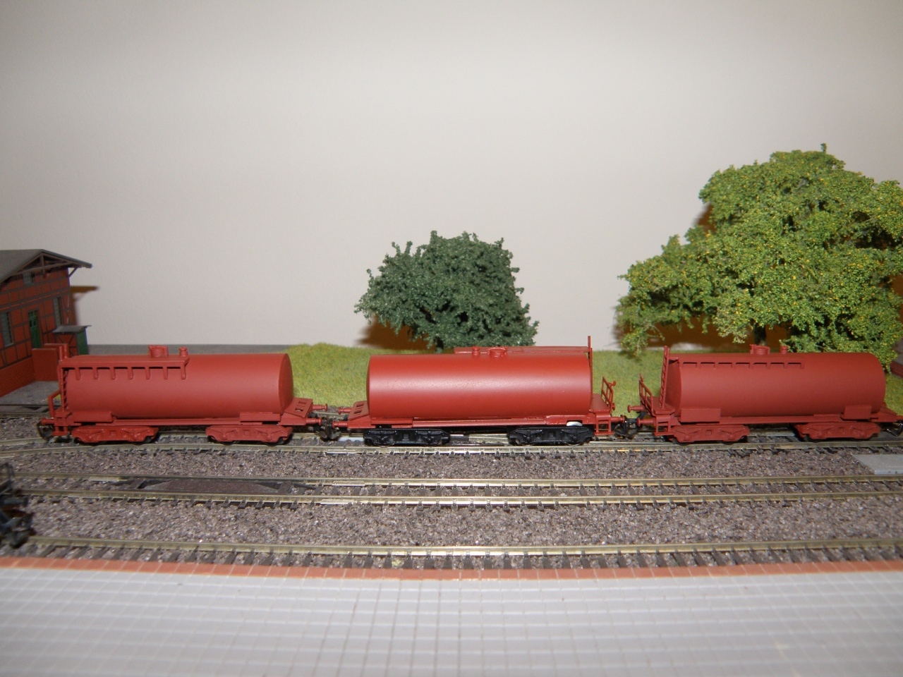 A licitálóson vettem tartályvagonokat és megpróbáltam Lackó Pista leírása alapján Zakks vagonokat építeni. Ennyire futotta kézügyességemből: