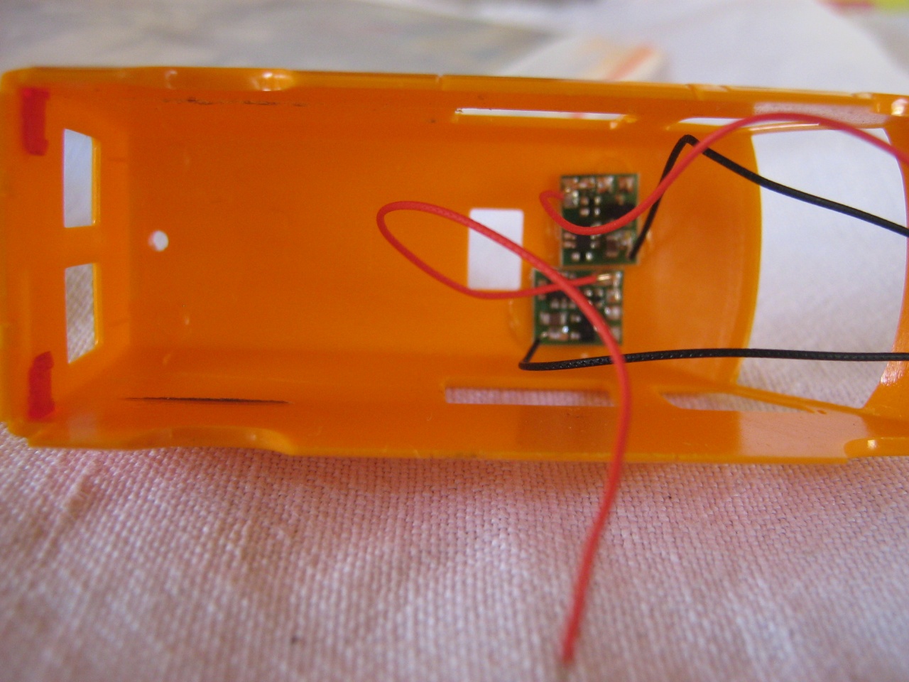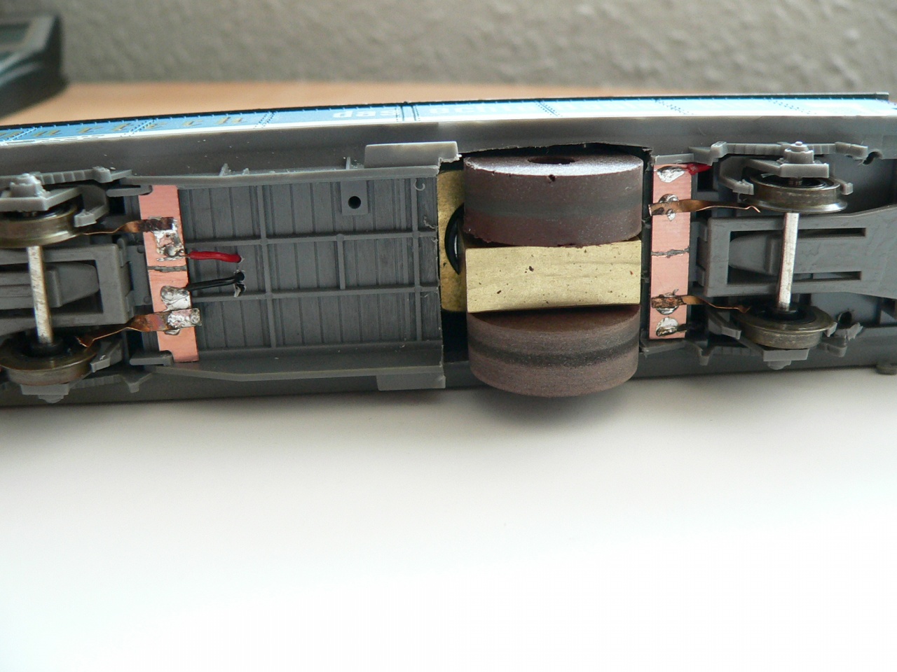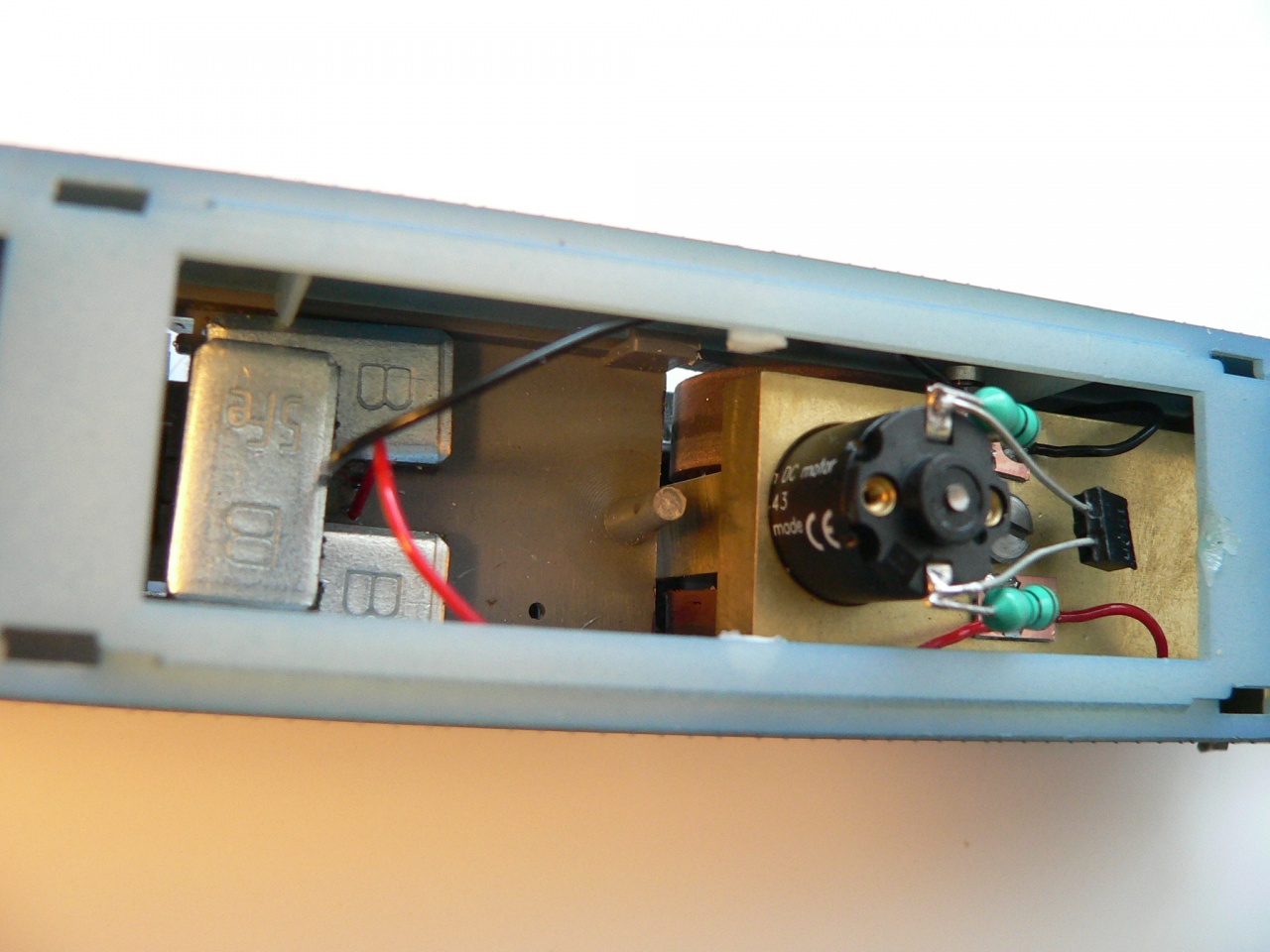 Szia. Az sb-modellbau-tól vettem a mechanikát, és a beépítés módja, áramfelvétel módja már saját ötlet. Az eredeti kocsiból megmaradt a mindkét oldali vontatási lehetőség, igy a mozdony már nem csak egy kocsival közlekedik. Be fogok építeni még egy diódát is mert: - a tisztító kerék ellentétes forgása miatt a használatos menetirány a fotó esetében jobbról balra. |