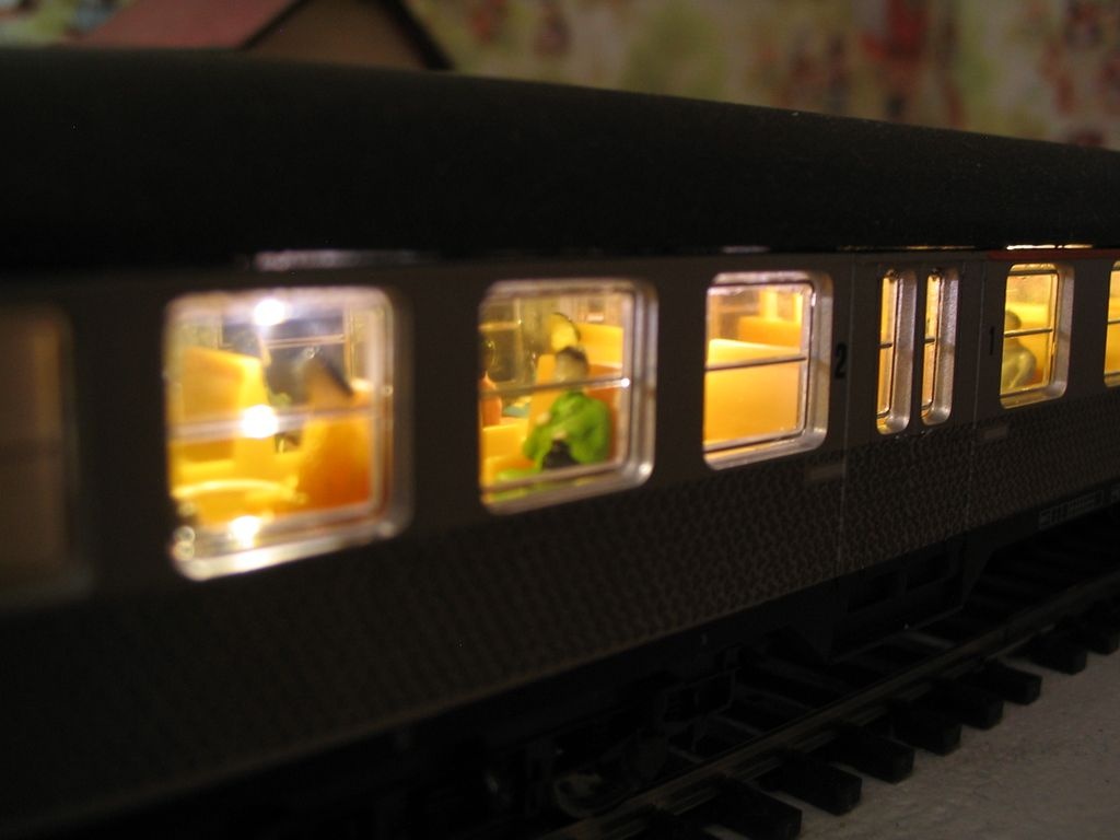 De már van ötletem a LEDek sárgításához,hogy ezen vagonokban is a 'kornak megfelelő' színvisszaadású világítás legyen. ( 5db 16V-os izzó 2100Ft!!,míg 5 extra led 300) |
