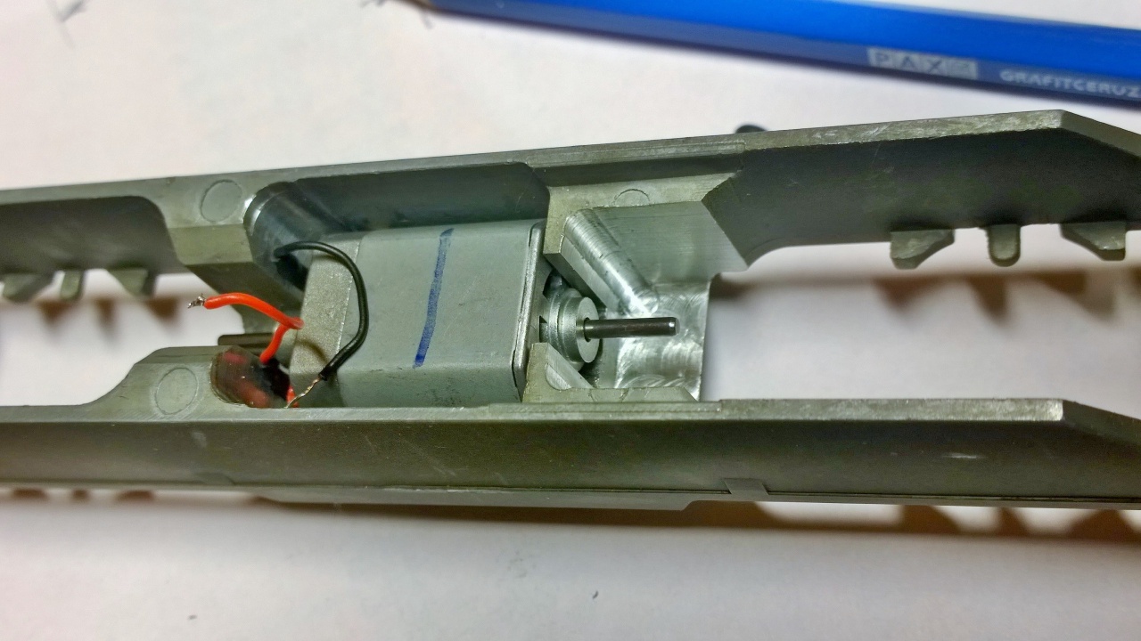 A motor helyét ki kellett faragni a súlyból,és a kardántengelyeit is rövidíteni kellett...
