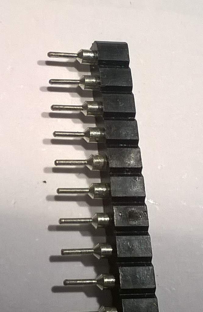 Meg lehetett volna oldani, de még felvágás elött. Egy hosszu (sokpolusu) tüskesort összeragasztasz egy ugyanilyen hosszu hüvelysorral. Ha a ragaszto megköt egyenként levághatod a 2 polusu de ellentétes konnektorokat. |