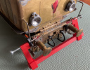 A vezérmü alkatrészei már megvannak, részben össze is van rakva. A van egy kis gondom, de már vannak ötleteim hogyan oldjam meg. A vezérmü tartokerete is 0,3-s alpakkábol készült de egy kicsit szük lett nem fér be egy egy összekötö rud. Kb 1 mm-el kell bövitenem.