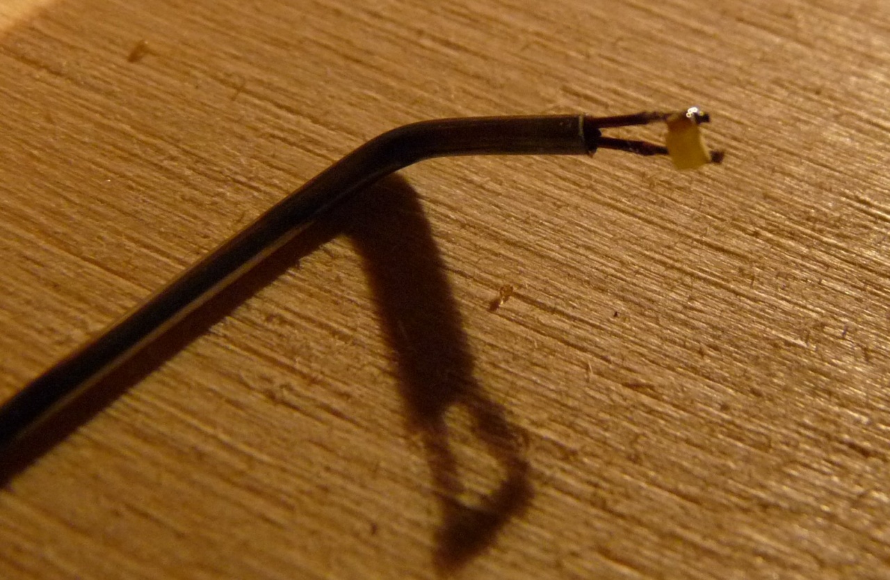 Valószinűleg a kezembe akadt a világ legkisebb ledje, legalább is úgy éreztem míg ráforrasztottam a két drót. A fénysorompóban fog dolgozni. |