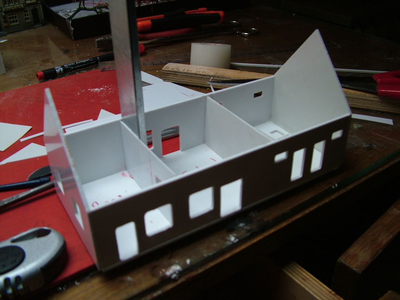 Javaslom az építőknek a 0,8 - 1 mm vastag sztirol lemezt. A csatolt képen látható épületeknek az alapja, végül az lett amit vártam. |