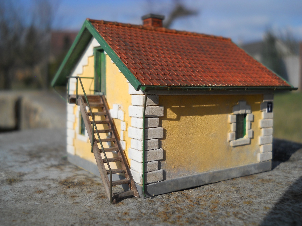 Megpróbáltam egy váltó őrházat építeni (a lépcső még hiányzik), így sikerült: |