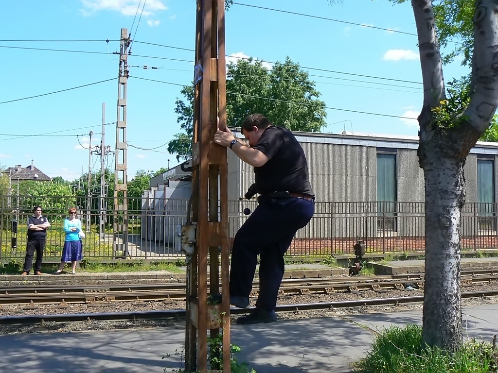 jelentette. (Rákoskert mh. és Rákoshegy előjelzője között félúton egy ismeretlen személy van az oszlopon.) A helyzet tisztázását követően a bal vágány 17h43'-kor feszültség alá helyezve. A rendőrség és avillamos felsővezeték"BSS2000 Kft." munkatársai a vágány mellett az állomásközt végig járva már a személyt nem találták. 18h18'-kor a jobb vágány is feszültség alá helyezve.