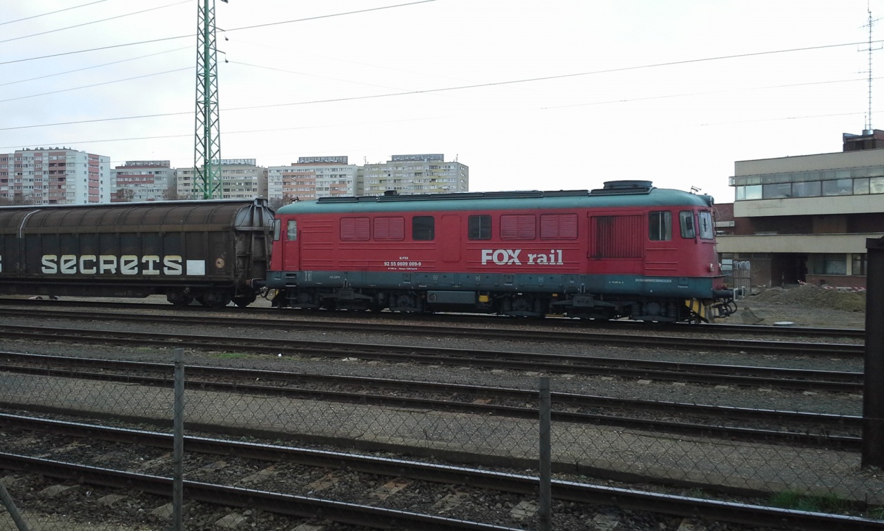 - egy Sulzer FoxRail színekben (a mögötte lévő vagon oldalán ékeskedő graffiti precíz kivitele is érdekes)