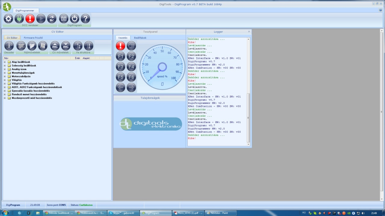 A dekódere eleinte működött, de a digiprogrammerrel át akartam lőni más címre, illetve megváltoztatni pár beállítást. Egy idő után nem kommunikált a digiprogrammal. CV8 értéknek megpróbáltam a 85-től eltérőt beírni (ez a gyári alap?). Nem történt semmi.