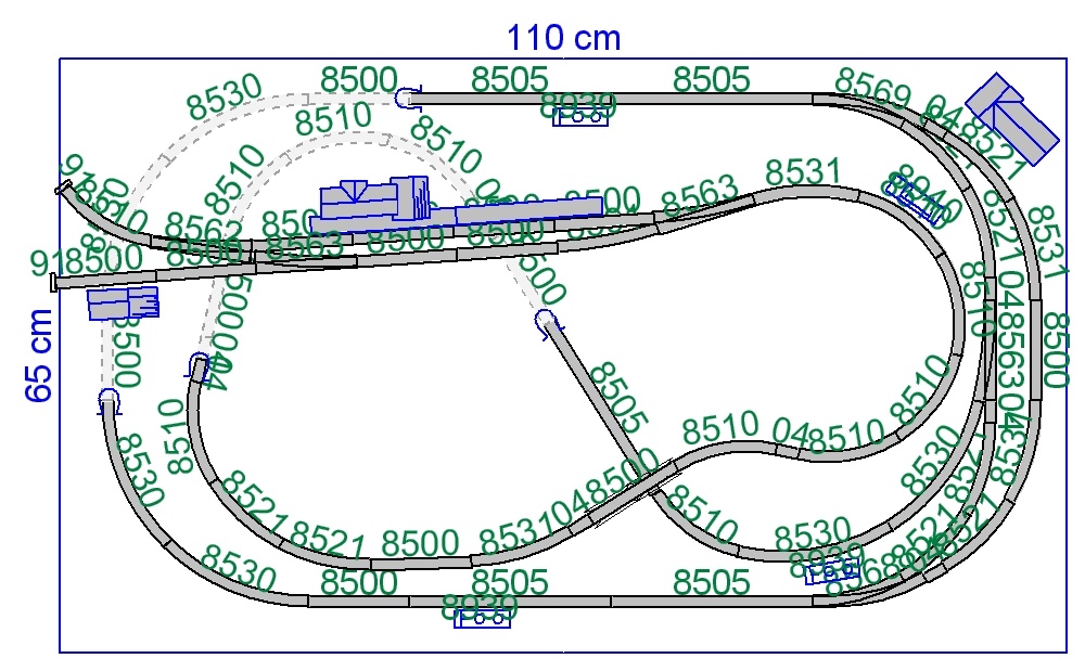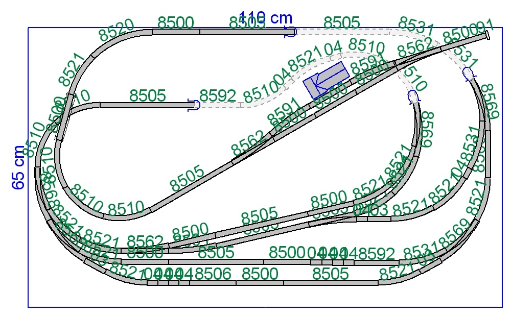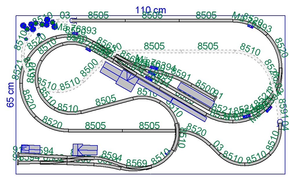 A második terv lesz megépítve, a vézérlés analóg (később lehet digizni majd, ha kell), a sínrendszer Märklin. |