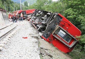 Súlyos baleset volt Svájcban: Kisiklott a Gleccser (Glacier) Expressz. Sajnálatos módon egy ember meghalt, 42-en megsérültek a balesetben. Az eset "érdekessége" (ha szabad így fogalmaznom!), hogy ez a "világ leglassabb expressze", mindössze 30 km/ó sebességű... Ennek ellenére, a fetői szépségű szakaszon (St. Moritz és Zermatt között közlekedik a vonat) 3 kocsi siklott ki, amiből kettő fel is borult. (Szerencse a szerencsétlenségben, hogy csak ilyen lassan ment, ha gyorsabb, belegondolni is szörnyű, mi történt volna!  ) |