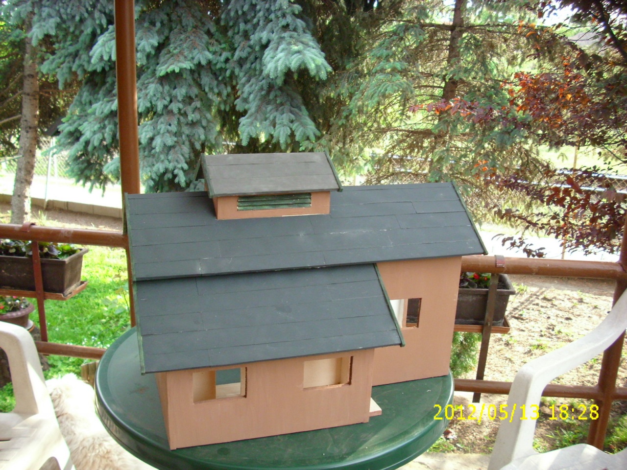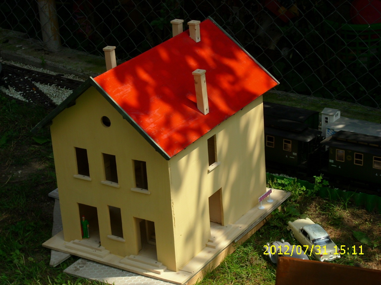 Oda jutok az állomás tetejét kellene cserepeznem. jó még ablakok stb. bőven van rajra munka. A piros festék csak ideglenes, hogy addig is legyen ház kinézete. |
