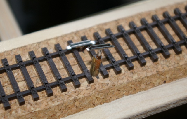 A töltéses sín sem olyan rossz, ráadásul nem kell a töltés kialakításával bajlódni  Ráadásul az állítóművek elrejtése is megoldott (csak lyukat kell vágni a váltó alá az alaplapba, hogy gond esetén is hozzáférhető lehessen.)