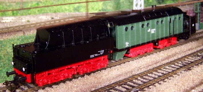 Tegnap hosszú idő kihagyása után elmentem a Láng börzére. Pár perc alatt összefutottam egy Piko BR55 -ös SNCF mozdony szerkocsijával, aminek a küllős kerekétől kezdve minden fekete. C-rugó ki, Piko kapcsoló az elejére, és már passzol a hómaró és az SBB mozdony közé.