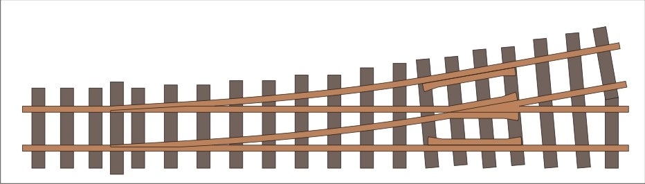Egy 10 fokos keresztezési szögű H0e kitérő.