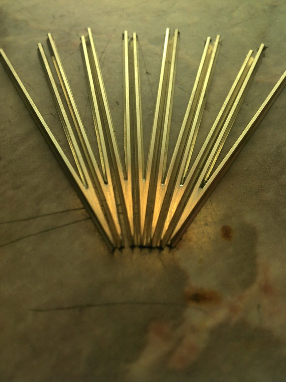 Antal Miklós: Köszönöm az elismerést! Készítettem egy szögsablont, amivel elég könnyű kireszelni a szöget, a váltó összeépítő sablonban forrasztom össze úgy, hogy a tetejére egy kis plusz cint futtatok, ezt a többletet síkba reszelem, utána 800-as, majd 2000-es papírral felpolírozom.