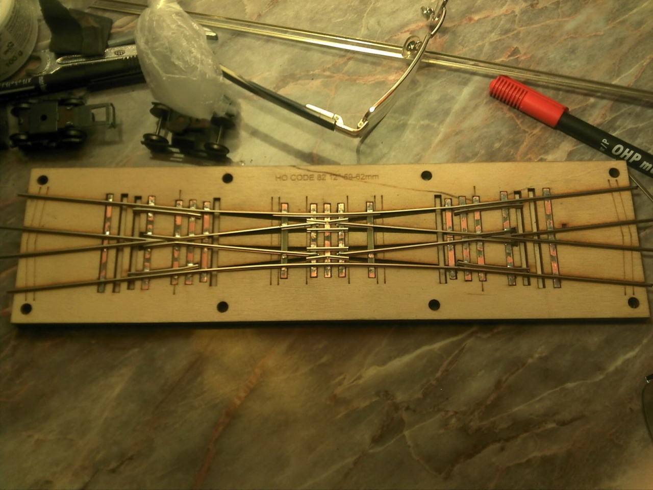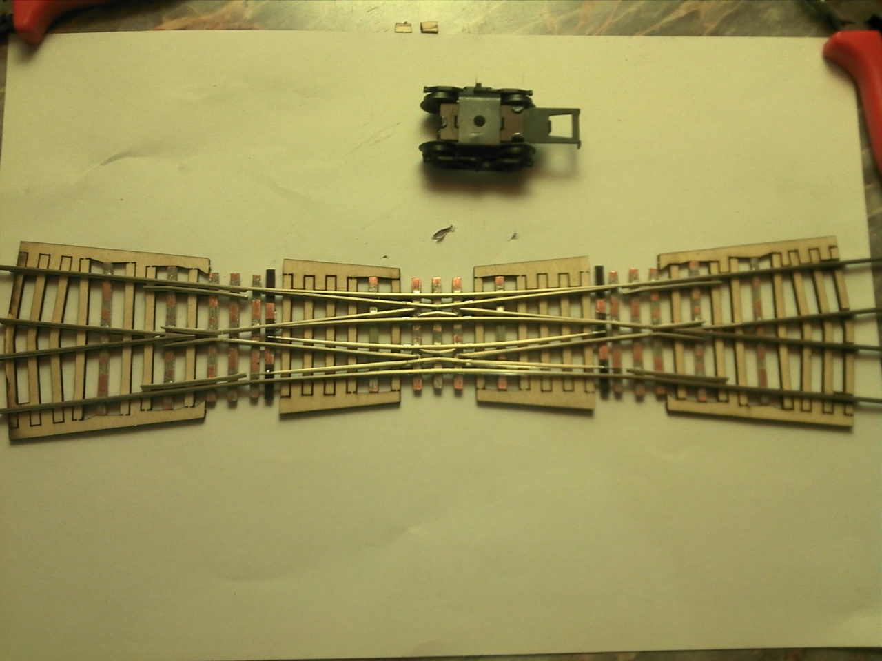 A most készülő angolváltó szerkezete is elkészült, holnap talpfa ragasztás és festés. A középrészbe nem akartam vezetősínt építeni, de aztán üzembiztonsági szempontok miatt meggondoltam magam. Jó minőségű gördülőállomány esetén biztos nem lenne gond, de az ördög nem alszik... |