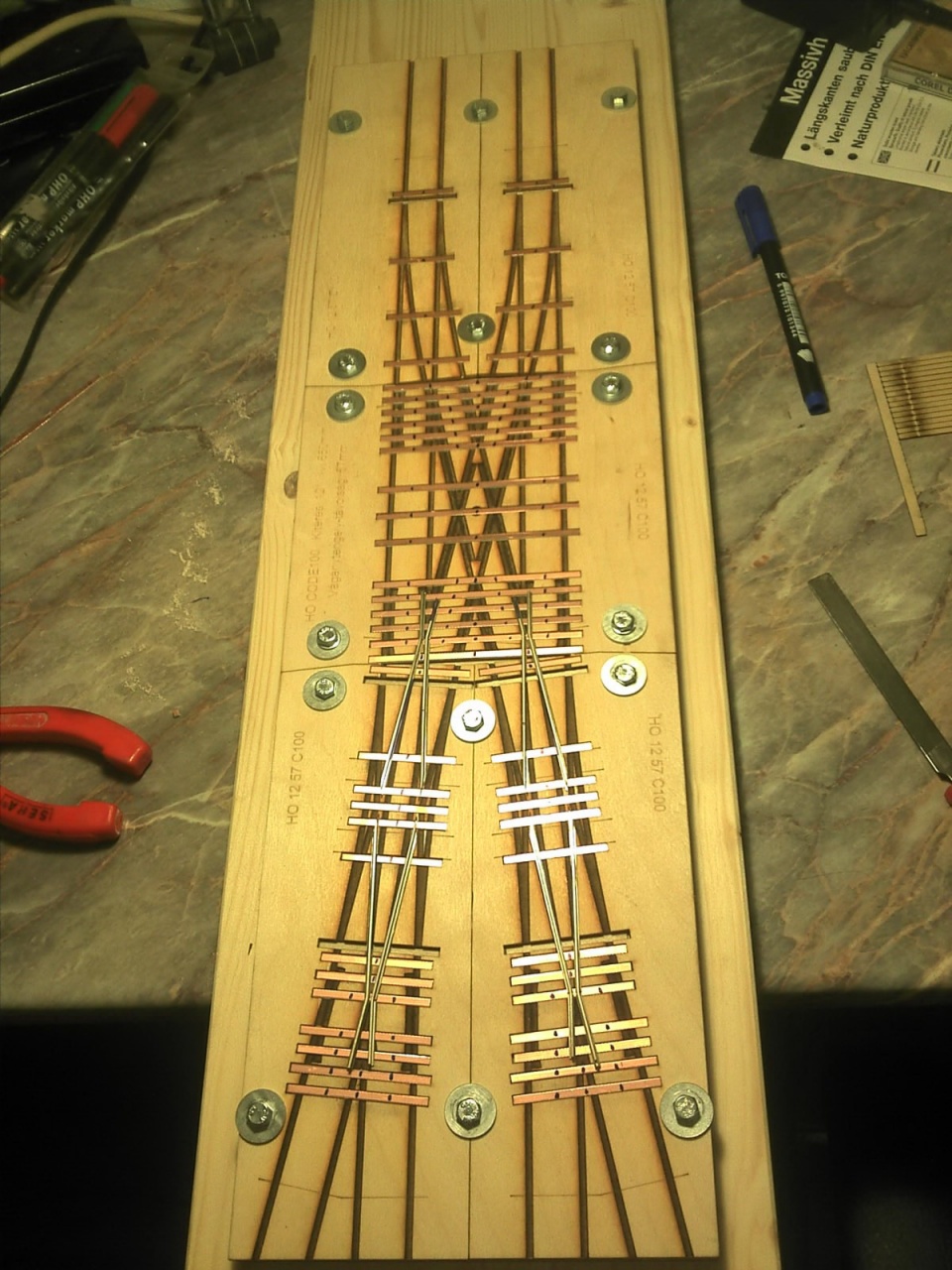 Ma meglepően sokat haladtam! Nagyon jól sikerült a középrész, mindkét forgózsámolyom szépen fut rajta, alig döccen a keresztezésen, és vezetősín nélkül se fut fel a szívre egyik oldalon sem. |