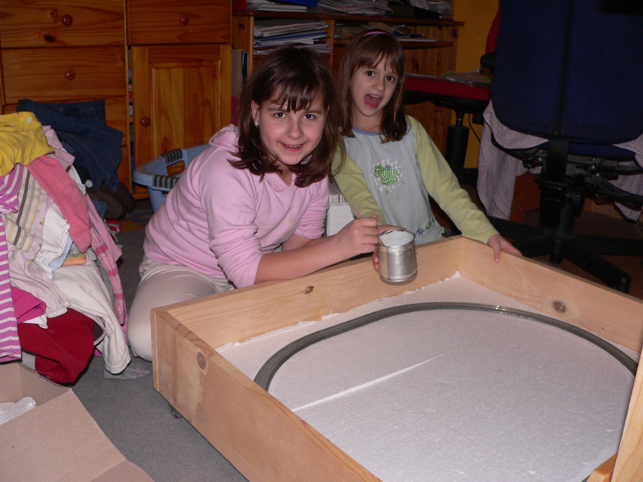 Az "asztal" váza és befedése teljesen kész, a tó szögletes besüllyesztése van még hátra. ETWG-nek és CsíkosháTTú-nak hála a PWM vezérlés tökéletesen működik, a váltók vonóvezetékes megoldására is megvan már a kész prototípus. Elektronikai szempontból a váltóutak beállítása nincs még meg...