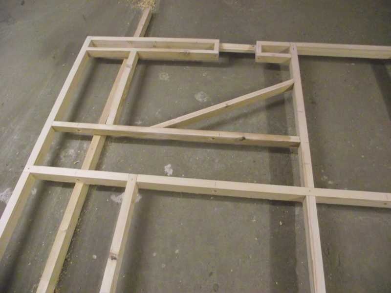 A váz egyébként 5x5-ös fenyőből épült, ami 4,5x4,5-re lett gyalulva. A sarkoknál és a kereszteződéseknél össze lett lapolva, kitöltve faragasztóval és csavarozva. Az egyik szerintem legérdekesebb rész a tó "torkolata" ami ugye az asztal szélére esik (felette lesz a híd) Itt ki lett vágva és csiszolva a fa felső része. A tó körüli lécek 1 cm-vel keskenyebbek alulról így befér alá majd a rétegelt lemez is ami a meder alapját fogja adni. |