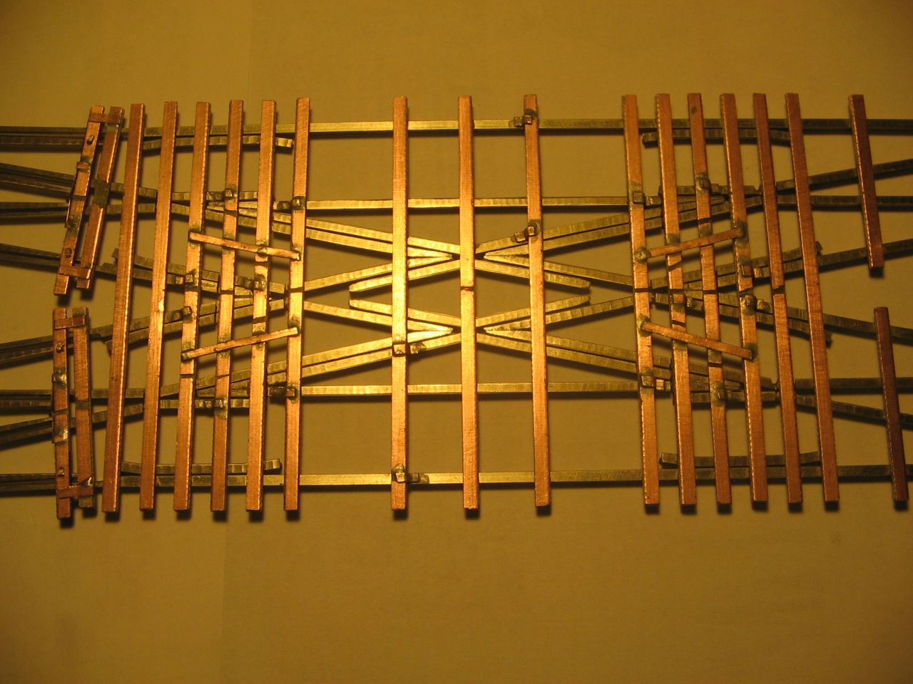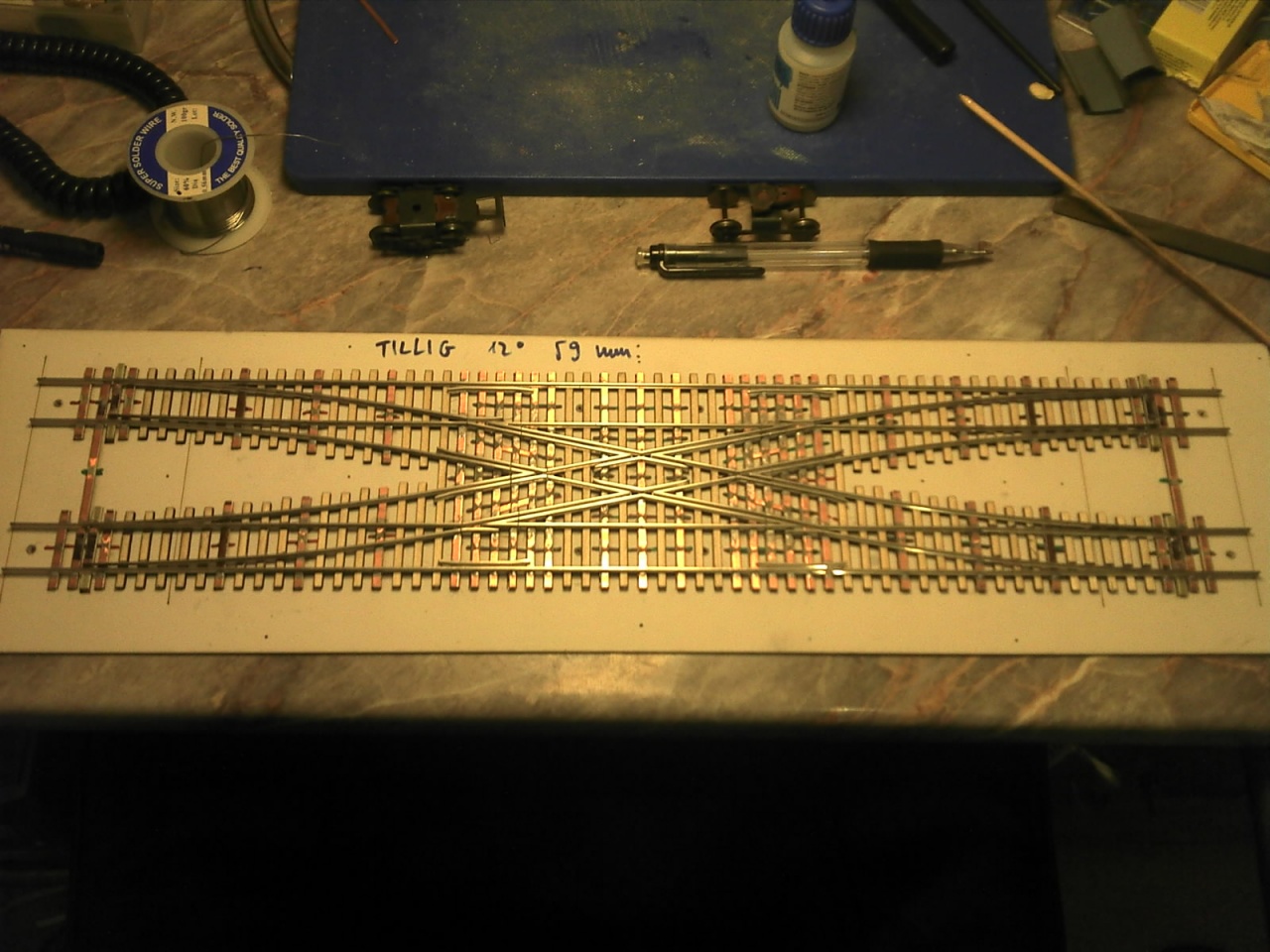 Nekiugrottam egy sima H0 hózentrógernek. Tillig profilból, Tillig geometriába készül, vágánytengely-távolsága 59mm, a hossza 2 db EW2-nek felel meg. Az EW2 15 fokos kitérésű átmenőköríves váltó, de abból elég nehéz lenne hózentrógert faragni, ezért ez hosszban megegyező, de 12 fokos egyenes váltókból lesz. |