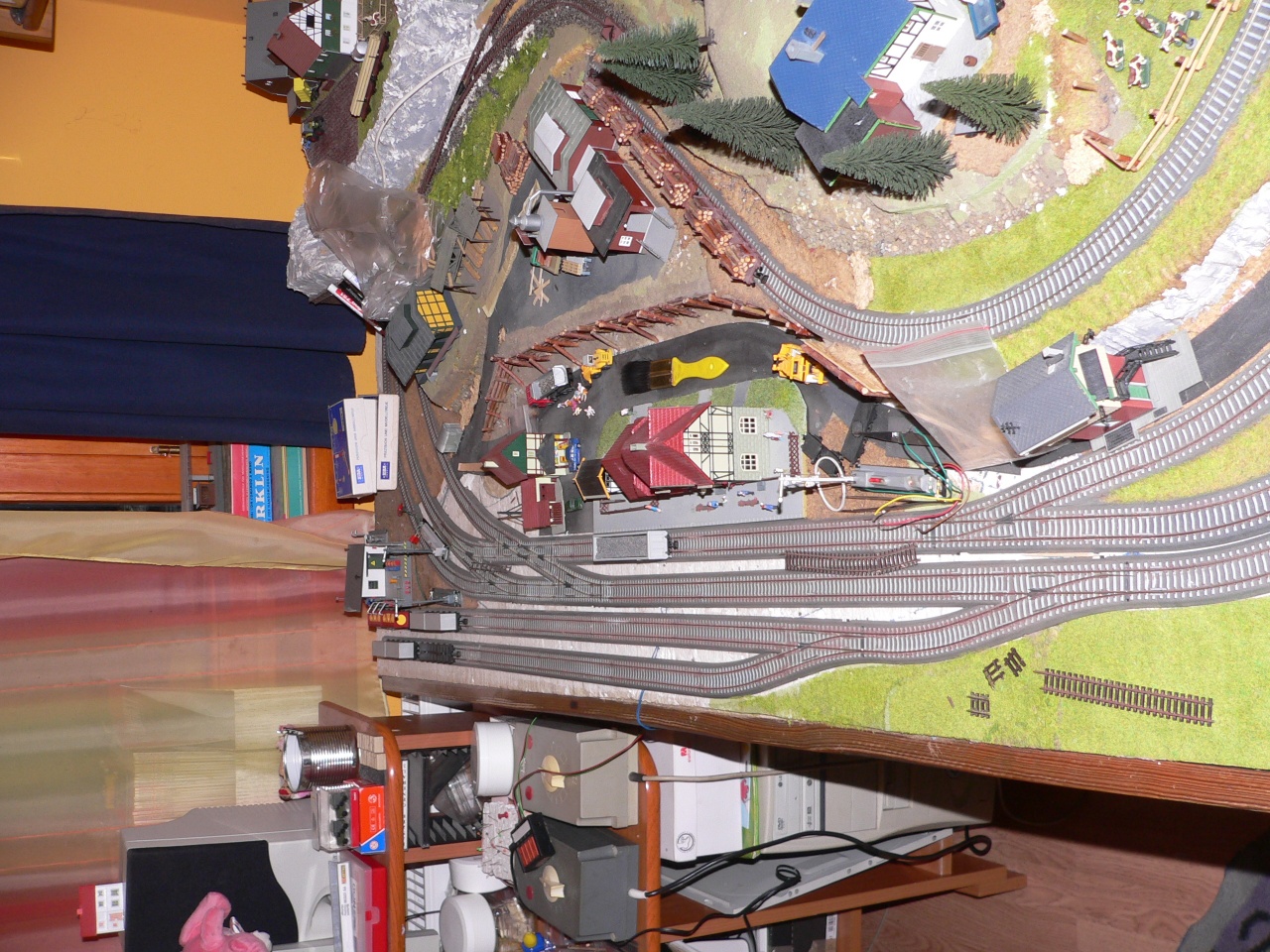 Amugy csak egy apro megjegyzés az egész vonalvezetéshez - a kezdö terepasztalok minden hibája fellelhetö rajta. Mindenáron a kétvágányu pálya vezetése. Egy ilyen vonalvezetéshez abszolut nem illö állomás (tul kicsi és egyszerü), ami pl. nem indokolja az üzemanyag telepet, mert nem valoszinü, hogy egy ilyen állomáson leakasztják a mozdonyt tankolni. A tolato csapat sem tudja ezen az állomáson összerakni a vonatot, azaz ök is elmennek avval a néhány kocsival valamelyik szomszédos állomásra, ahol összegyülik egy vonatra valo vagon - és ott lesz üzemi telep, tankolási lehetöség vagy kisebb mühely stb.)