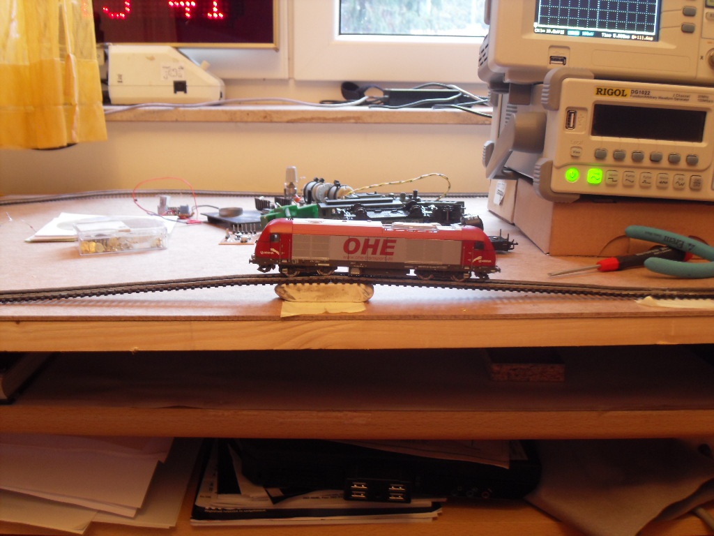 Sajnos akármit csináltam,egy DC tápról hajtva mindkét mozdony áramfelvételében a sebességtől függően 1-10ms szakadások voltak,hol itt állt meg,hol ott,egyértelműen a sinek állapota miatt.Most el fogod törni a kezem,de lesmirgliztem,úgyis kuka lesz a vége.