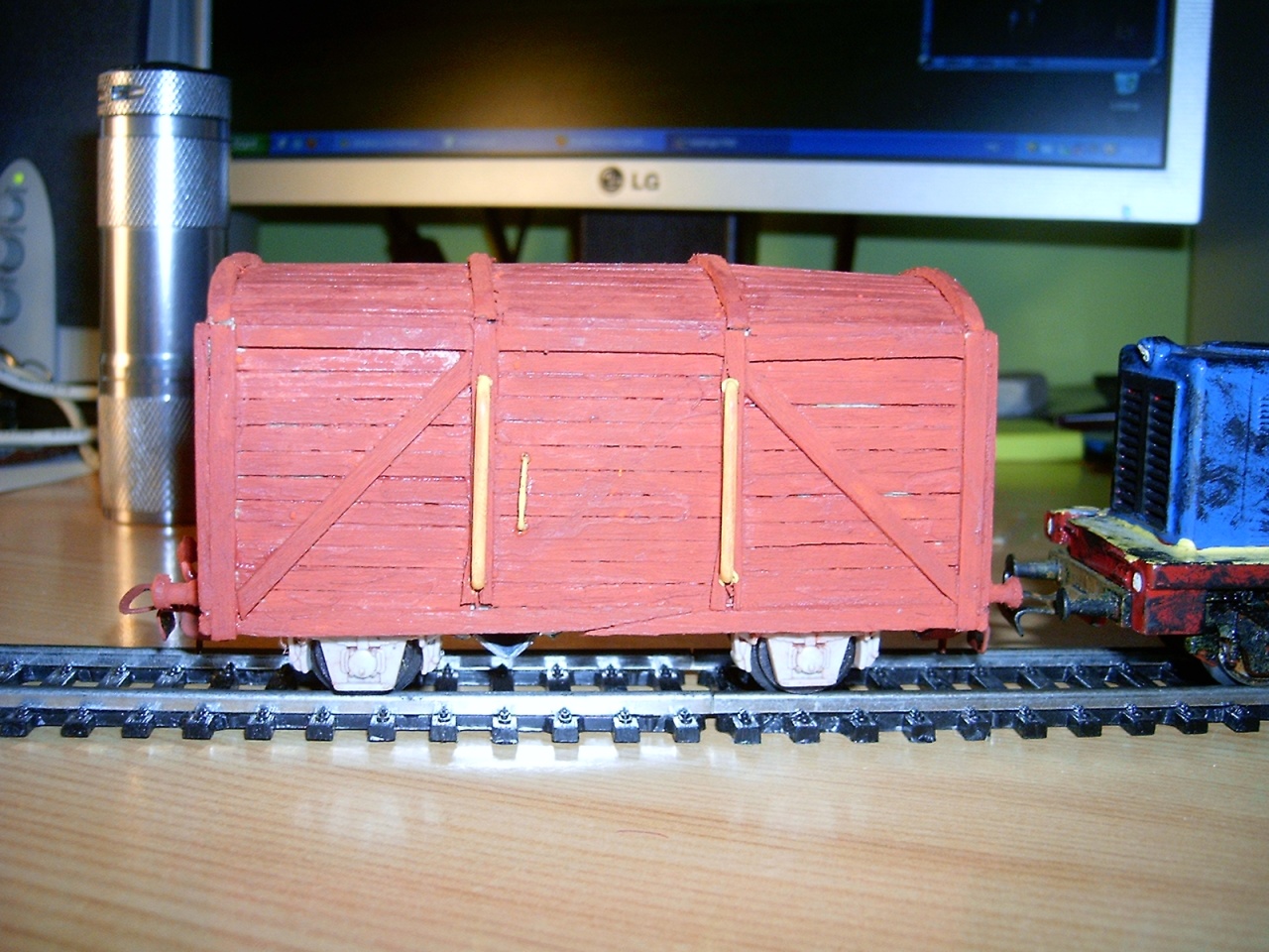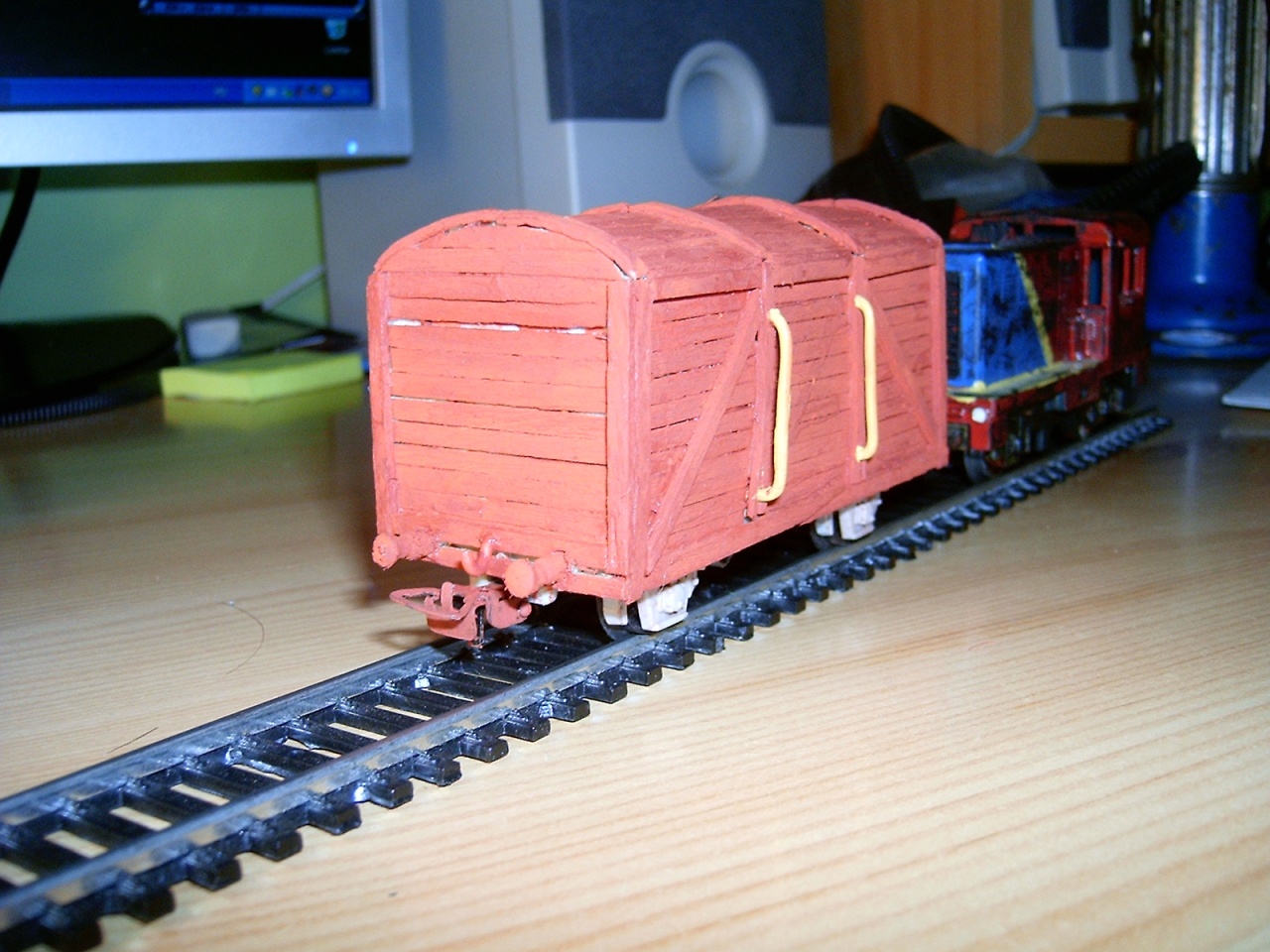 Én még új vagyok itt, és még nem is vagyok profi modellező, de igyekszem, pár napja találtam erre az oldalra, és gondoltam megmutatom a mai alkotásomat véleményezésre.  Egy zárt fantázia teherkocsit építettem javarészt fogpiszkálókból. Nos vannak még benne girbegurbaságok, de életemben először csináltam ilyet. Az egész egy kezdőkészletes piko tartálykocsi alvázára épült, jó sok ragasztó felhasználásával. Kíváncsi vagyok mit gondoltok róla, véleményezzétek légyszi. Ja és még azt szeretném megkérdezni, hogy szerintetek hogyan lehetne a legegyszerűbben feliratozni? Máv feliratot, és egy pályaszámot szeretnék rá, esetleg egy két piktogramot amik szoktak lenni.