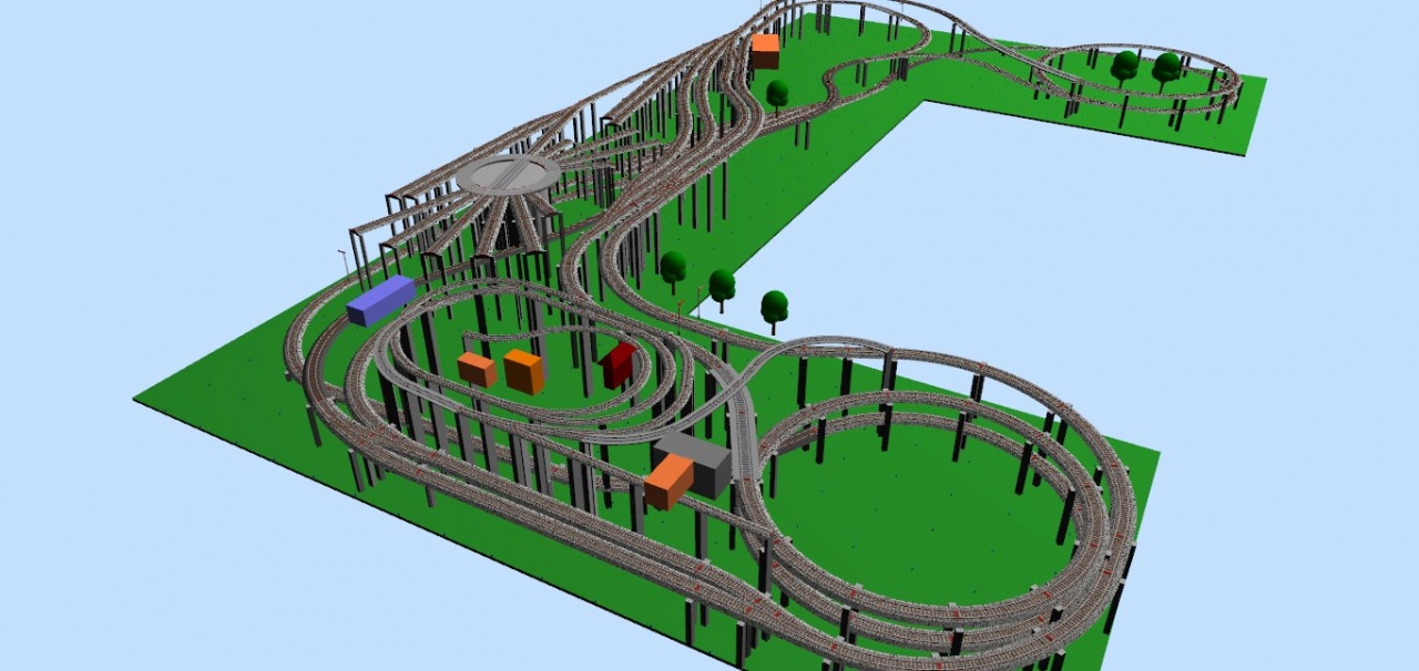 Otthon van, és elvileg hordozható is (most éppen össze van csukva, mert épül az uj hobbiszoba), csak pillanatnyilag még nem üzemképes egy kiállitásra (hiányzik a hátsó vonalvezetés a vonatok forditására). |