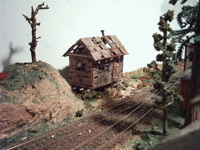 Valoban minden deszka egyedien lett felragasztva, és nem kis fejtörést okozott, hogy a házat már a viharverés utánnira kellett épiteni (azaz egyik szög sem meröleges, de mégis azt a benyomást kell kelteni, hogy azok valamikor szépen merölegesek voltak).