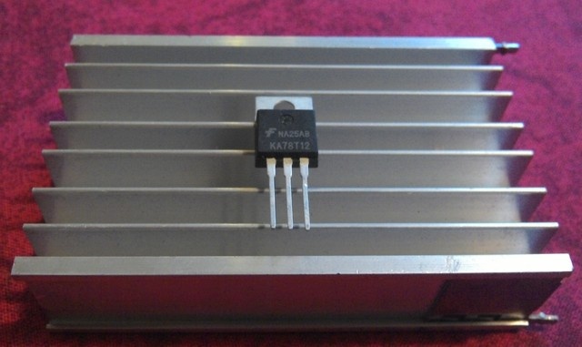 A feszültségszabályzóra ekkora hűtőbordát szántam.