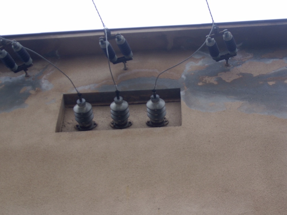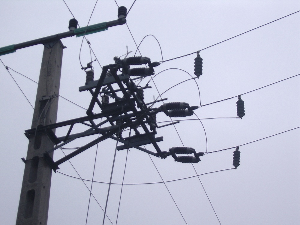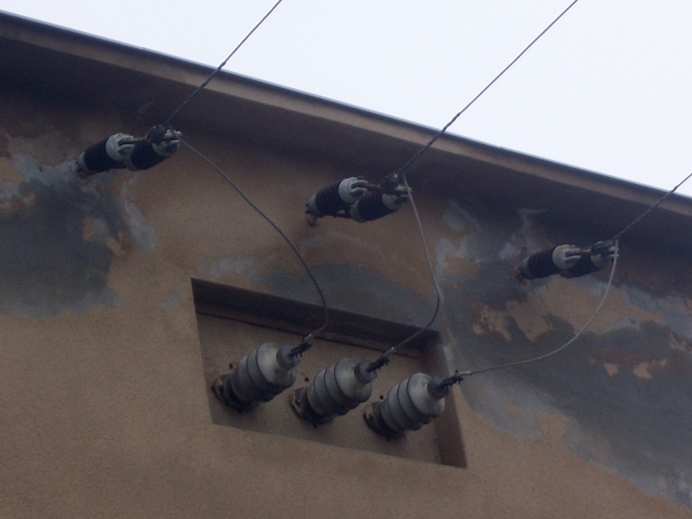 Lényegében nekem elég annyi, hogy a barna szigetelőkön pihentek a vezetékek, onnan kötötték őket a fehér bevezető porcelánokhoz, a feszítőkön meg a tartósodrony volt.