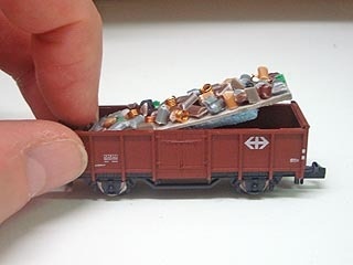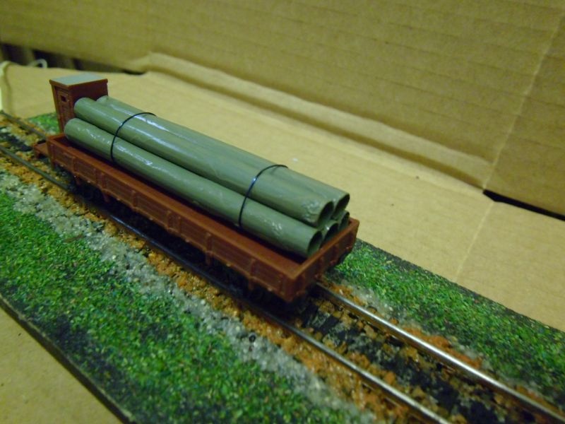 - hátránya: túl sok helyet vesz el a vagon belsejéből. H0-ás méretnél lehet, hogy belefér, de TT-nél már csúf tud lenni. Mivel papír ez is, ugyanaz, mint a vékonynál, rátapad, ráragad, csúnya leszedni, nem tud leválni a rakományról.