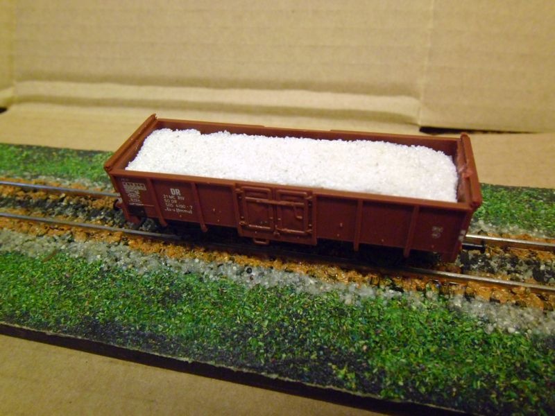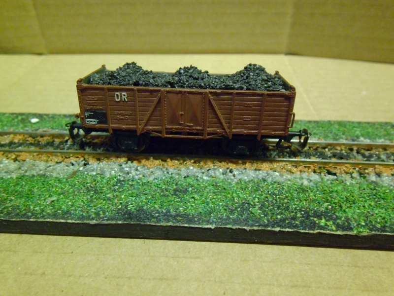 Én is csináltam ilyen díszkőből szénrakományt .De a súly több vagonnal vontatáskor probléma lehet. A mozdony hajtás rendszerét igénybe veszi . Ezt is kalkulálni kell