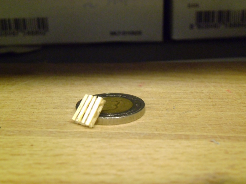 Köszi! Én TT-s méretben csináltam, így négy felé vágott gyufaszálakból készült. A gyufaszál, meg a fogvájó nagyjából ugyanaz a vastagságú, nem? (Mondjuk a környékünkön ilyen fogvájót nem nagyon lehet kapni.  ) |
