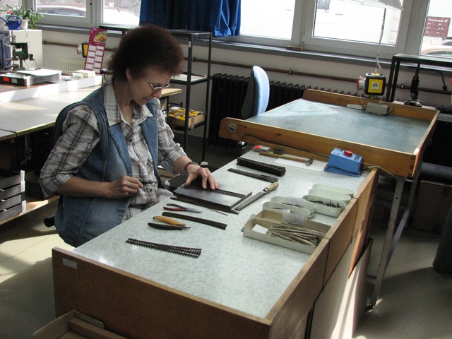 Ehhez csak annyit, hogy a képen látható néni egy csökkent munkaképességű hölgy, pontosabban siket. Ettől függetlenül remekül elvégzi napi 8-9 órában azt a munkát, amit rábíznak. Nevezetesen az az ő feladata, hogy kézzel befűzze a sínszálakat a talpfarácsokba, legyen az váltó, vagy sínszál. Szépen összeillessze az egyes részegységeket, rendben összeszerelje a terméket.