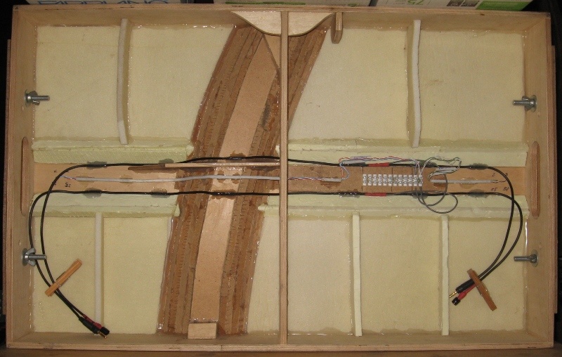 2,5 mm2 sodrott vezeték, mindkét sinszálnál azonos szín. A dogó hüvely felhelyezés egy BTTB gyári síndarab kinézete szerint van. Az asztal alján az oldalnak megfelelően, jól láthatóan elhelyezett gerincvezeték, tovább segíti a tájékozódást.