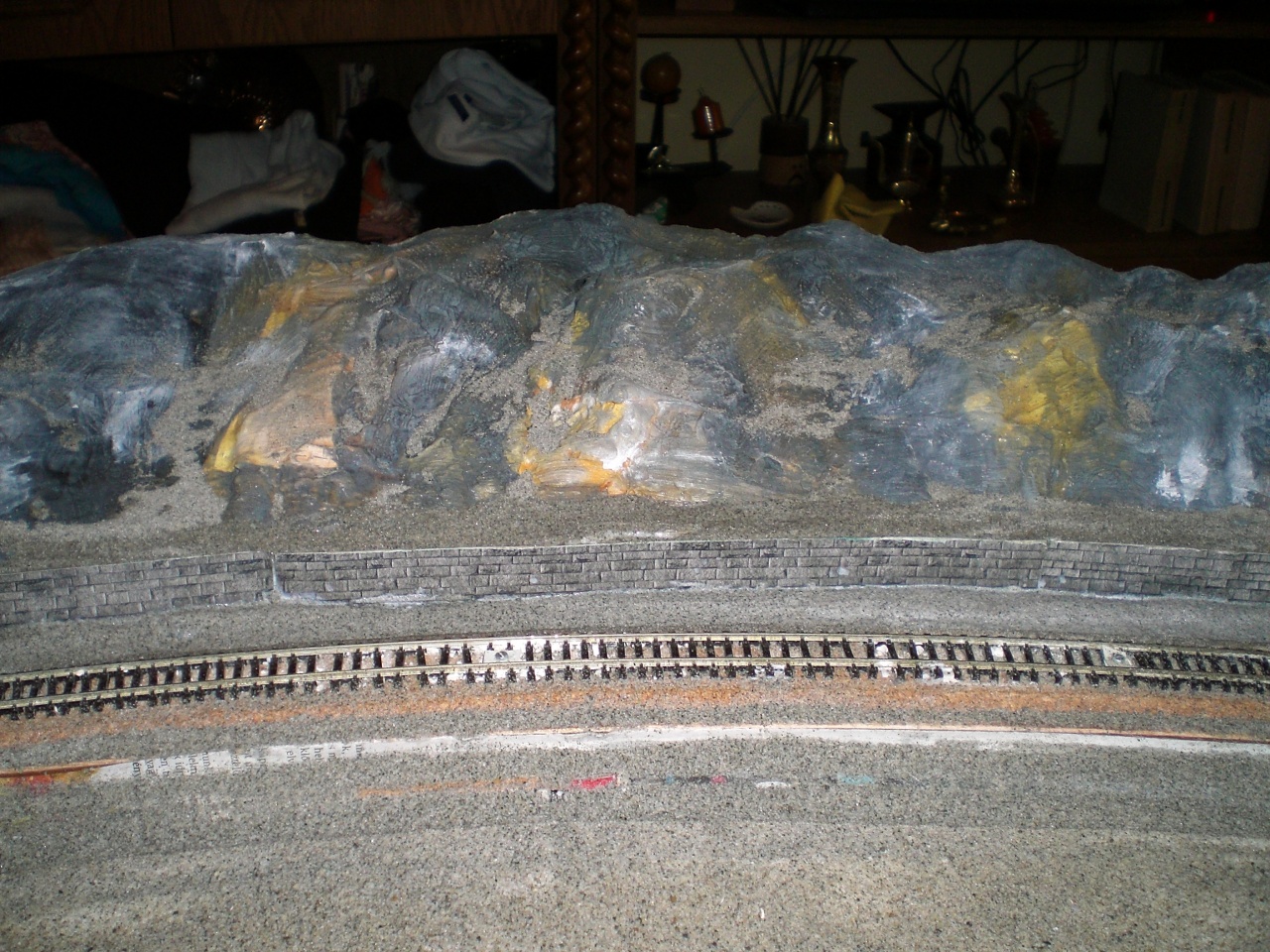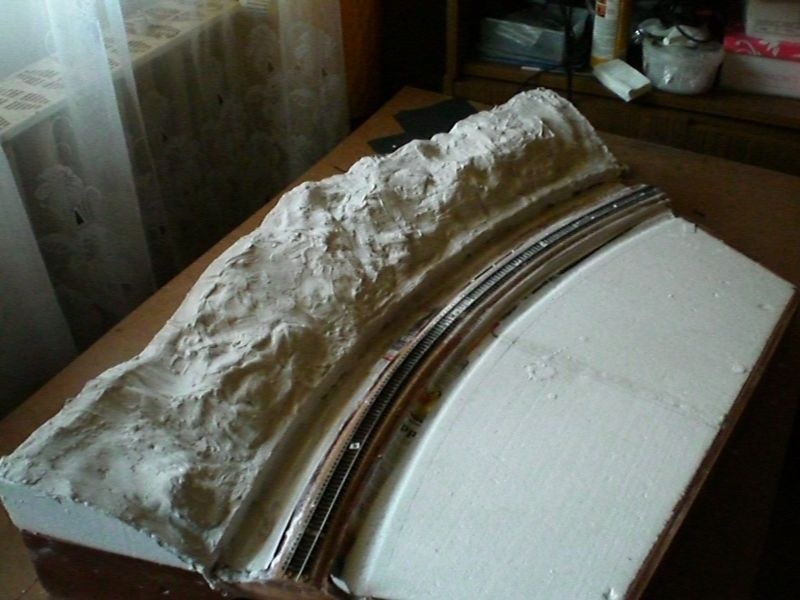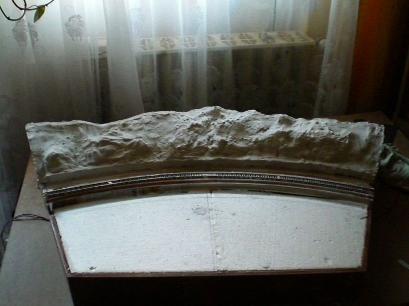 A sín még nincs rögzítve véglegesen.Így is elkövettem azt a hibát,hogy csak 1 réteg papírral maszkoltam,és a gipsz átette magát rajta. |