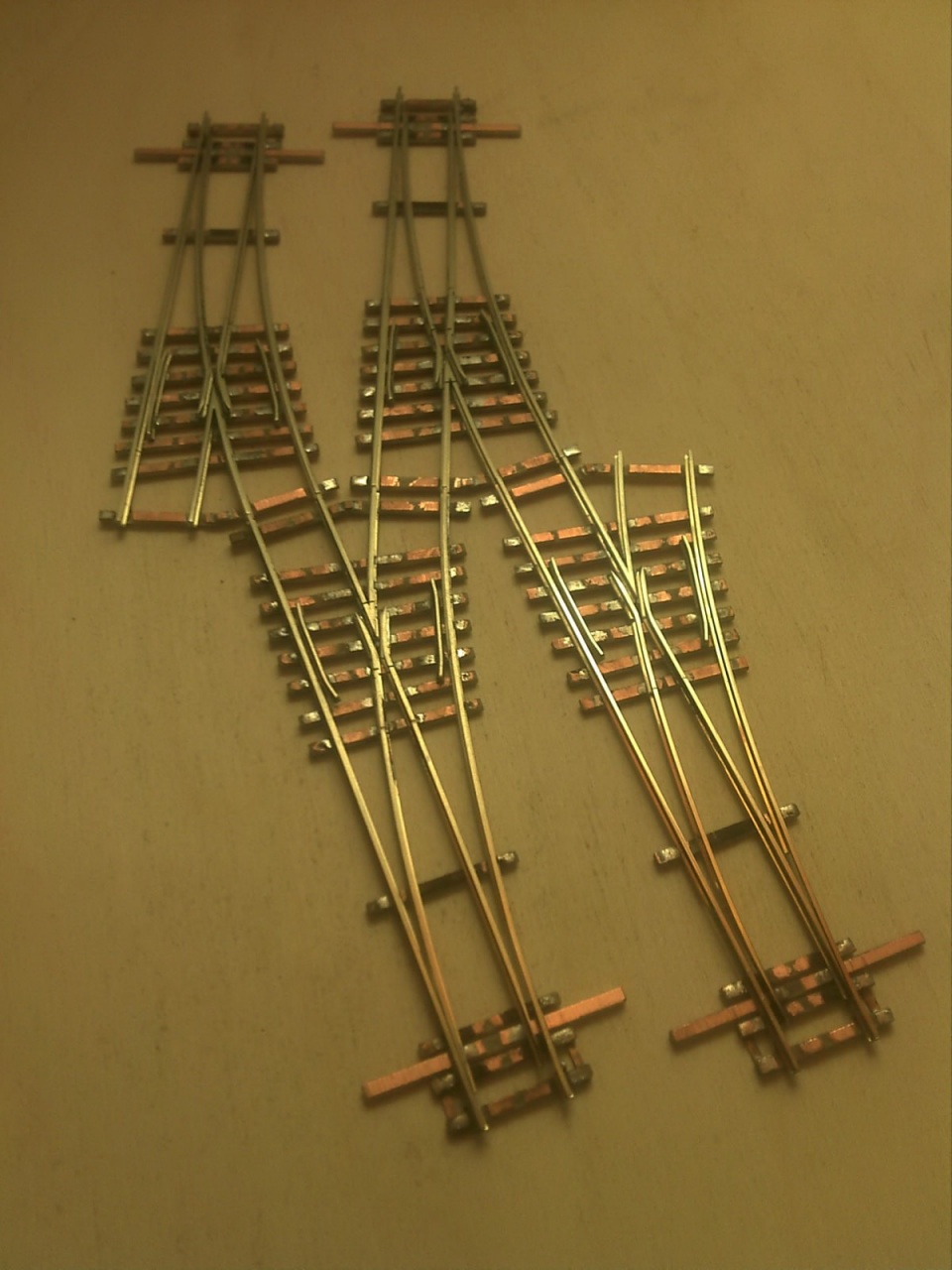 Így van, ezek a kerekek nem igazán alkalmasak a normál vágányon való közlekedésre. Hogy üzembiztos legyen, váltóknál sokkal kisebb távolság kéne a tösín és a vezetösín között, mint amit a NEM elöír. Ráadásul a gyártók még ezt sem tartják be (Tillig sem). Lemértem egy OFF méretü Roco kitéröt, a min. 14mm helyett a vezetösín-könyöksín külsö tavolsaga 13,5mm volt! |