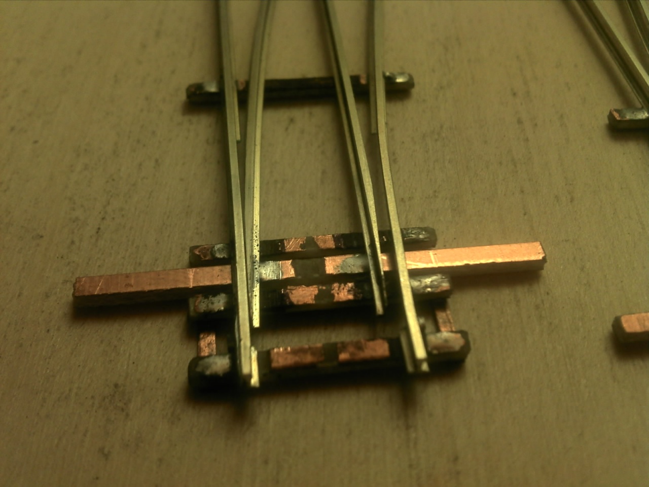 A csuklópont síncsatlakozó darabból készül, ami ~3mm hosszúra vágtam. Alatta egy acélszálat forrasztok a sínre, részint hogy a helyén tartsa, részint a stabil elektromos kontakt miatt. |