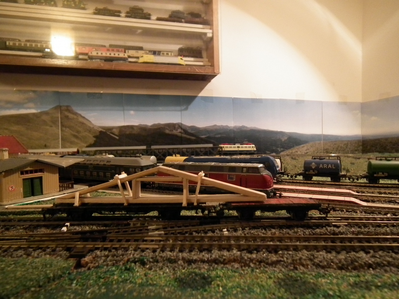 A modellben ( magasfalu kocsinál ) pl elég a 1-3 felsö réteget megcsinálni alatta meg egy hungarocell vagy szivacsdarabka lehet. Ha látni a rakományt oldalrol, akkor meg kell csinálni az egész rakományt. Ilyenkor nagyon kell ügyelni a deszkák méreteire ( vastagságára, szélességére - és inkább a vastagabb fosznikat modellezd pl 2"x8" deszkák kicsinyitett modelljeit.). A finomabb deszkák már nem mutatnak jol a modellben.
