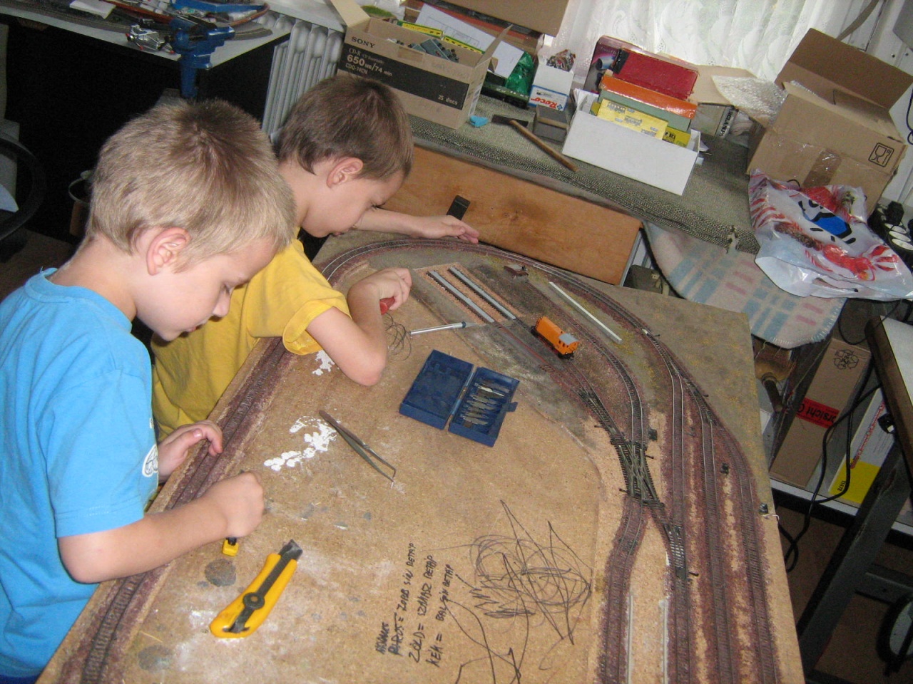 A fiúkkal mi is BTTB megmaradt sínekből építgetjük a játszó asztalunkat. Sok a munka vele, de ez nem baj  |