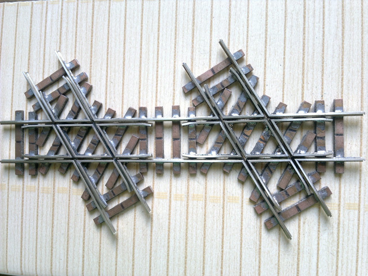 Fuggerth vágánykapcsolat lerövidítése. 15° vágánytengely-távolság 60mm. Egy Fuggerth sínekből épített terepasztal átvágányozásánál lesz felhasználva. |