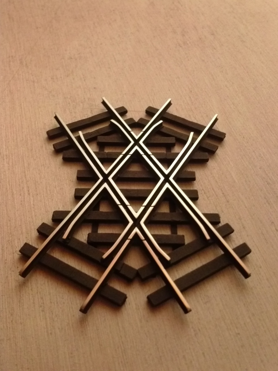 Nem tudom, hogy a kis nyák mennyire kell, vagy nem, ez egy kiforratlan dolog. Az a baj, hogy a nagy szög miatt túl kevés a talpfa a stabil megtámasztáshoz. A Fast Track-os sablon is elég hosszan megy ferde talpfákkal, mielőtt befordulna vágányra merőlegesre.