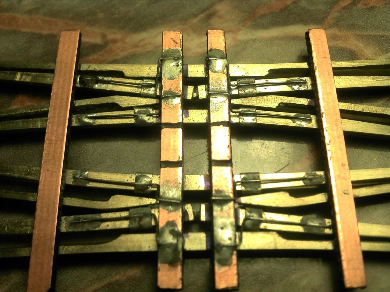Ha jól emlékszem, a hármasnál először a két tősínt, utána az első szívdarabot, majd a hátsó kettőt forrasztottam rá. |