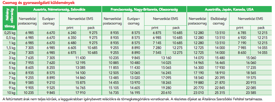 Hozzáteszem azért nekünk sem lehet okunk a panaszra, egy sima 25 dekás sima (nem trackes) csomag innen a németekhez 6985 Ft. (mai középárfolyamon 6985 Hungarian forints =
