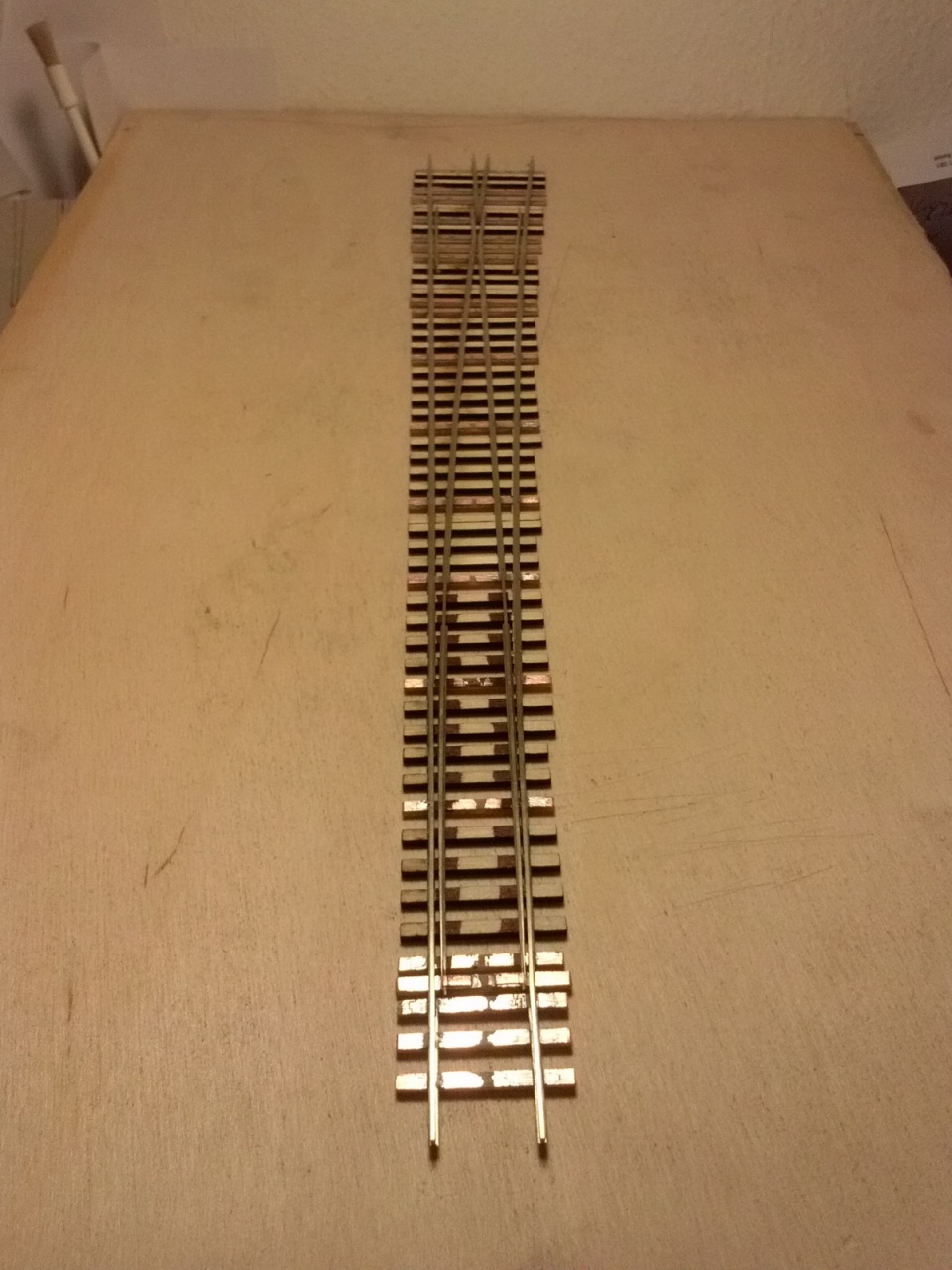 És így néz ki 12 darab villamos kitérő 1/3 készültségi fokon! Még 7 darab kell, de estére már így jártak a szemeim!  |