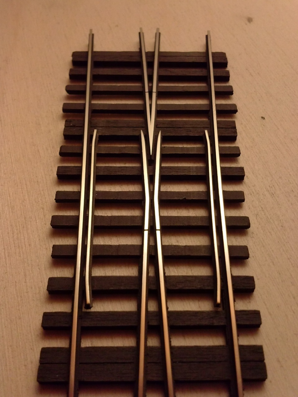 A vezetősín alá nem rakok semmit, mert a Tillig 2,07mm a PECO CODE 80 pedig 2,02mm, tehát nem is látszik. A Tillig standard viszont ~2,56mm, tehát egy 0,5mm-es lemezt kell alátenned.